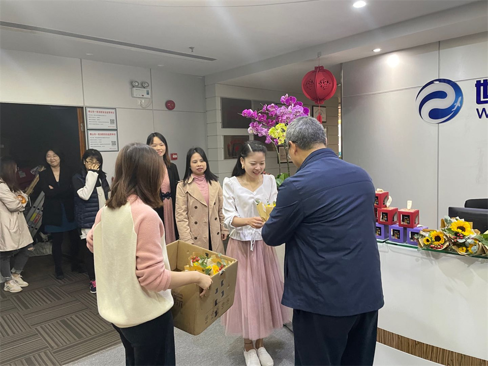 为庆祝“三八”国际劳动妇女节,喜迎建党100周年,广东世寰智能科技有限公司在工作之余展开关怀慰问活动,世寰智能为女性职工准备了精致礼品与时令花卉,表达对世寰“巾帼”的关怀与照顾。世寰智能副总冯夫鹏为众人送上节日祝福,感谢她们在岗位上的勤勉与奉献,并希望她们在日后的工作中继续发扬“世寰智能半边天”的精神。