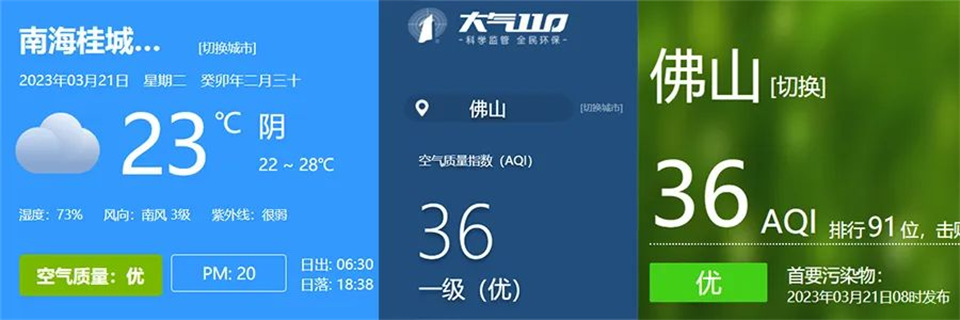 近年来,桂城深入落实大气防控治理,推行“站长制”职责,实行挂图作战,推进区域污染源的精细化管理建设,相关职能部门多措并举、大力攻坚,桂城空气质量持续向好。在网络上多个平台查询桂城空气指示,都显示空气质量优,桂城大气防控治理取得明显成效。
