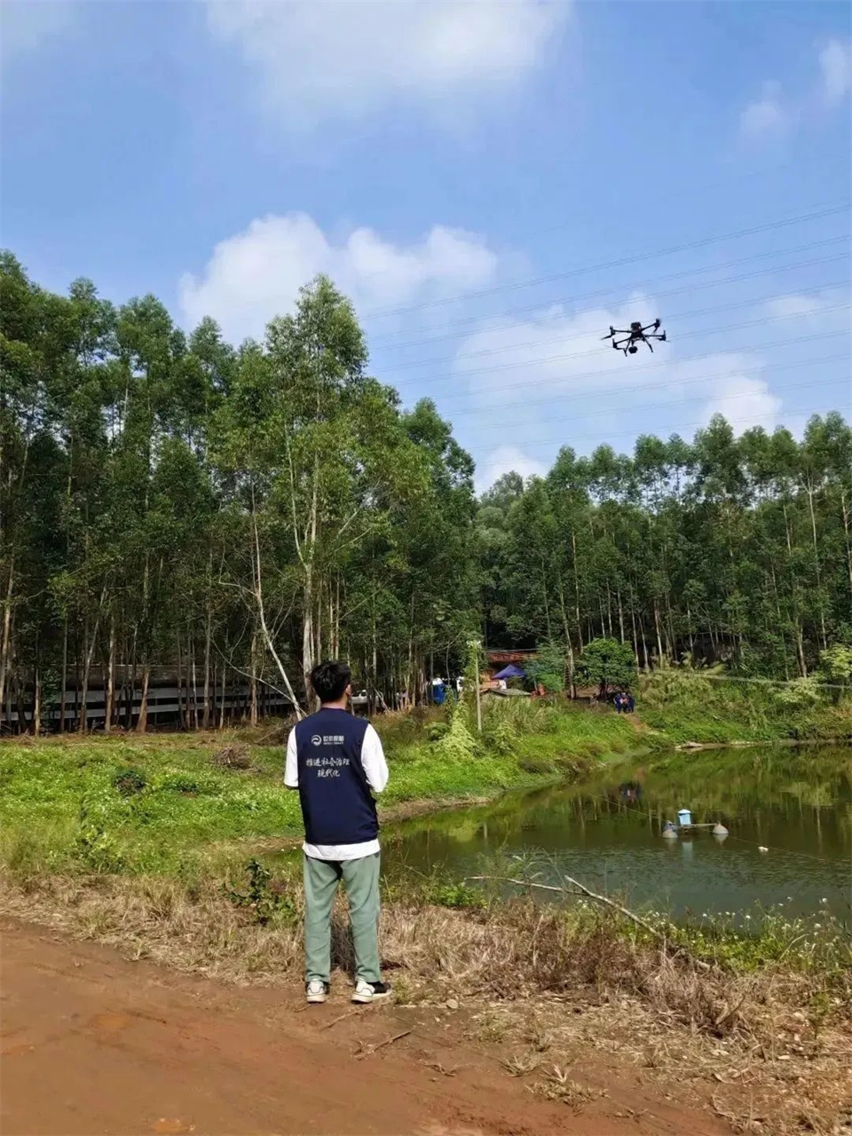 演练现场,随着一阵轰鸣声,无人机在世寰智能飞行工程师的操控下,迅速腾空而起,飞向白坭镇白花鸡场上空,开展森林防火巡查演练任务,一旦发现火情点,立即把画面实时传回指挥部,快速为扑救队员指引事发道路。