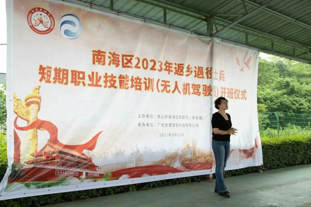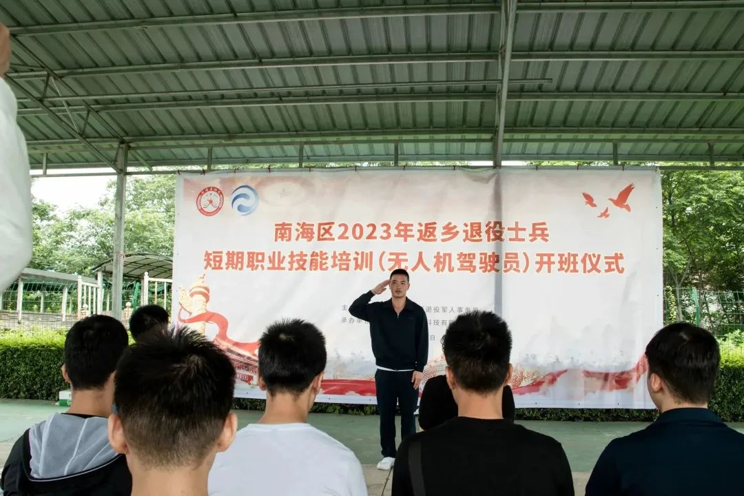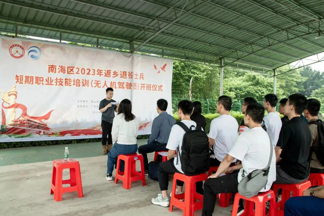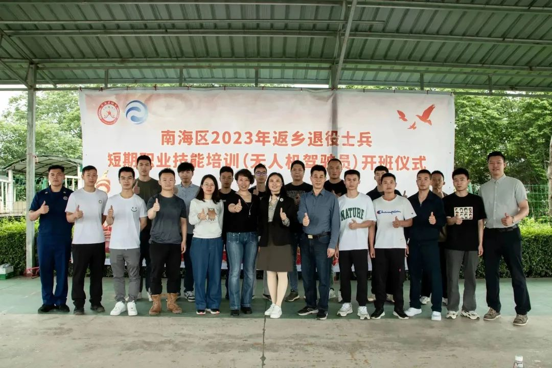 2023年5月13日上午,由佛山市南海区退役军人事务局主办,广东世寰智能科技有限公司承办的南海区2023年返乡退役士兵职业技能培训班(无人机驾驶员)在南粤飞鸿无人机测试基地正式开班,共有18名返乡退役士兵报名参加。