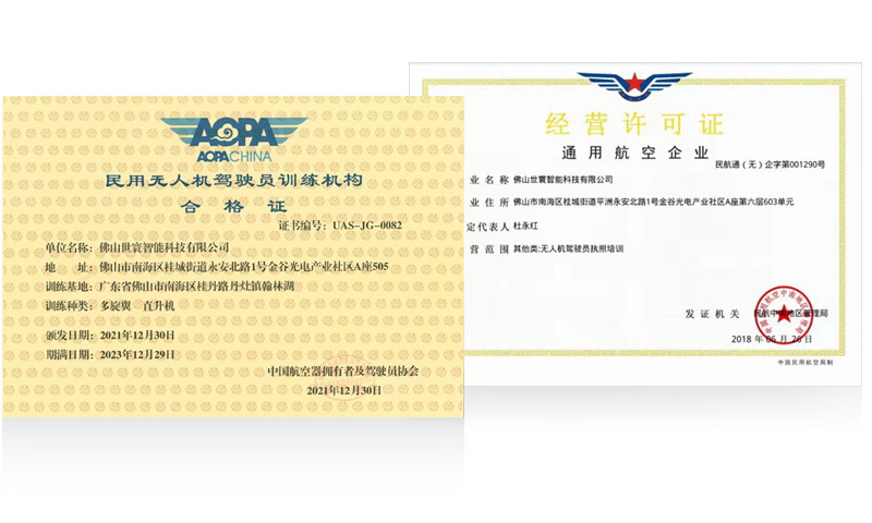 世寰智能无人机培训学院是经过中国航空器拥有者及驾驶员协会(中国AOPA)严格培训并通过考核、认证、最终授权的民用无人机驾驶员训练机构。可进行多旋翼、直升机视距内驾驶员、超视距驾驶员、教员取证培训、行业客户无人机操作人员的职业技能培训。 |