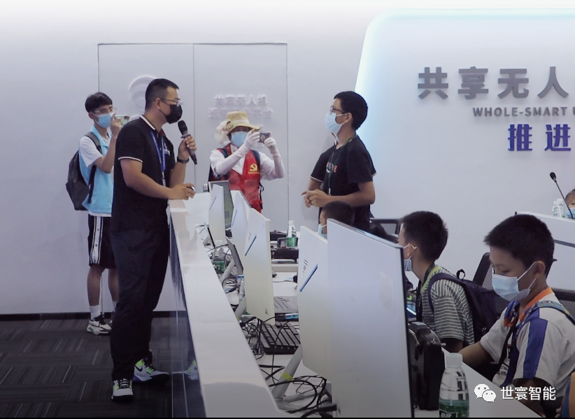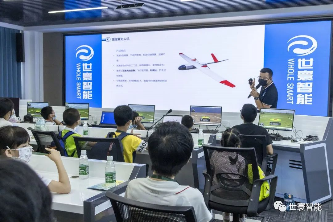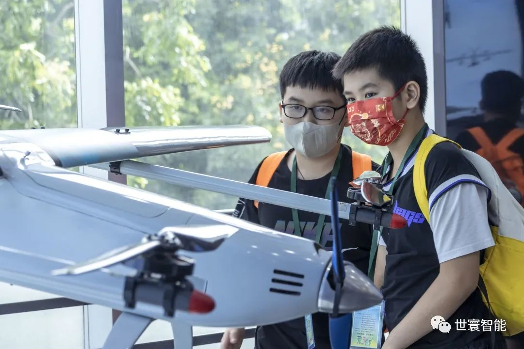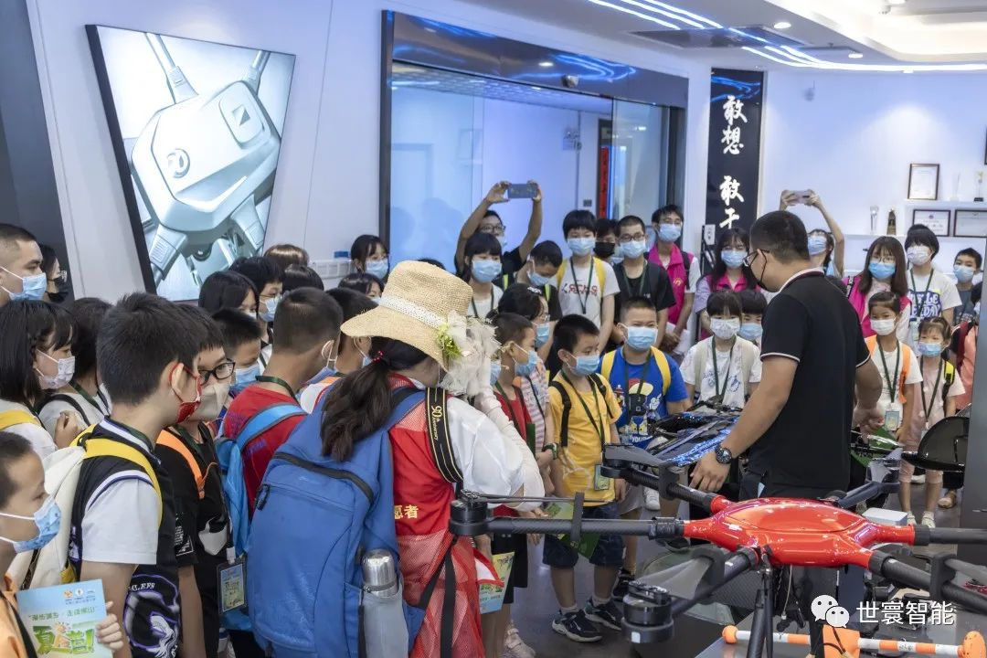 带领小朋友一起参观了世寰智能的无人机展厅。