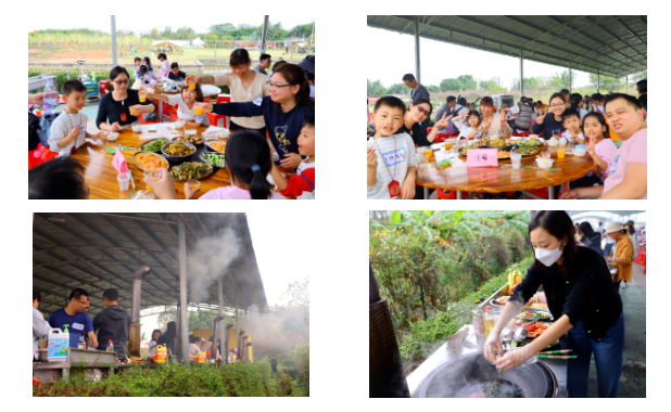 中午,孩子与家长们动手烹调丰盛午餐,有的洗菜、有的调味、有的生火,有的炒锅。家长们一边忙着手中的活一边开心地交谈,孩子在一旁也帮忙拿这拿那,忙得不亦乐乎。经过大家共同协作,一盘盘美味菜肴摆上了桌,大家吃得津津有味。