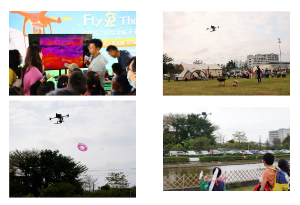 无人机在世寰智能的飞行老师控制下平稳起飞,模拟森林灭火和溺水救援的应用场景,孩子们近距离感受到无人机在社会治理中发展的作用,激发学习积极性。